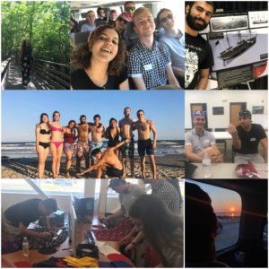 26 luglio: Sveglia all’alba, colazione al volo con uova strapazzate e bacon, poi sui van a recuperare un po’ del sonno perso (e cantare a squarciagola). Arrivati nei pressi di Harleyville, ci siamo immersi nella Beidler Forest, proprietà della Audubon Society (Società per la salvaguardia della natura), e passeggiato attraverso la palude “Four Holes”, tra alberi di quasi 1000 anni, acque color “English Breakfast tea” e radici di cipresso. Poi ci siamo diretti verso la Clemson University di Charleston e visitato il SCE&G Energy Innovation Centre, dove vengono testate le turbine eoliche più avanzate al mondo (questa è l’unica cosa che ho capito) e dove l’associazione SAFE (South Carolina Advocates For Epilepsy) ci ha parlato di epilessia e di primo soccorso in caso di attacchi epilettici. Abbiamo anche potuto scegliere le stoffe, tagliare e cucire dei cappellini per i pazienti affetti da epilessia, tutto questo tra una lezione su come gesticolare in italiano e innumerevoli tentativi (andati a male) di imparare l’alfabeto islandese. Poi (sì, non è ancora finita) abbiamo visitato il museo dedicato al H.L. Hunley, il primo sommergibile usato nel corso della guerra di secessione da parte della Marina degli Stati Confederati d’America, prima di metterci il costume, saltare sui van e dirigerci verso l’oceano.